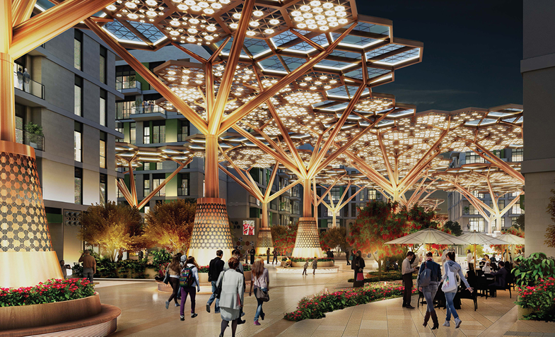 プロムナード内には、ショッピングエリア、映画館、遊び場、フィットネスセンター、ホテル、カフェ&レストラン、さらに住宅やオフィススペースが配置される予定です。