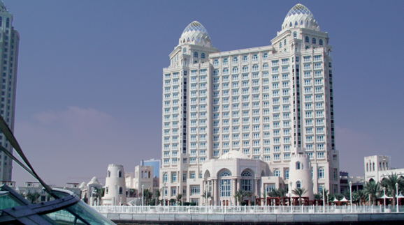 - In its rush to compete with Dubai, Qatar has scored a twofer with this sleek 20-story tower, at once architectural eye candy and the embodiment of a fresh hospitality concept: the gourmet business hotel. The ground-floor lobby’s bespoke Baccarat crystal tables, Murano glass chandeliers, kinetic paintings by Venezuelan artist Carlos Cruz-Diez and decorative wall of Rolex watches speak to the property’s luxurious excess, while the adjoining Le Cigalon restaurant and pastry shop serve beautifully presented Middle Eastern delicacies such as bahsaliye, a star-shaped pistachio cake, and viscous ice cream made with salep, a ground orchid powder.